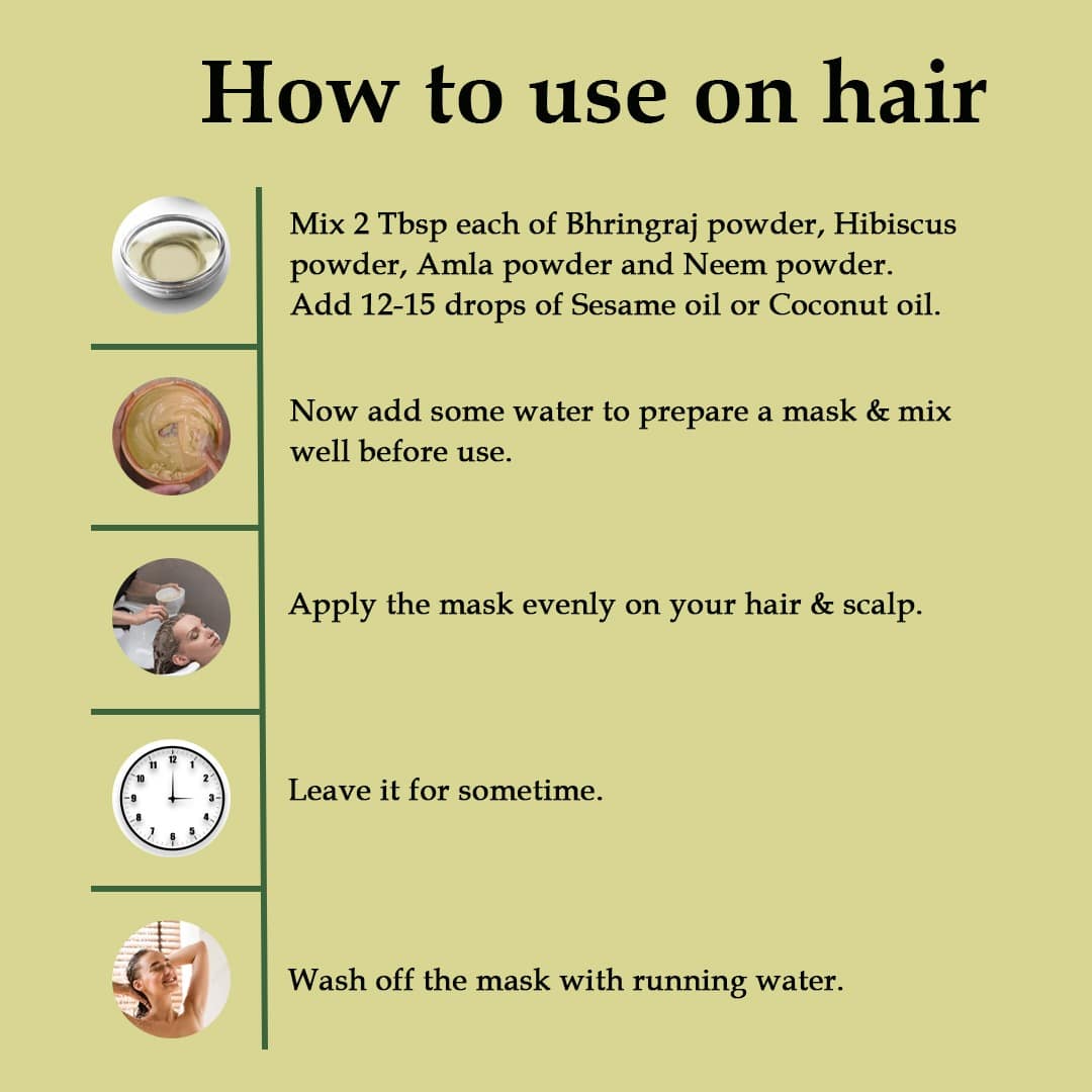 Usage: Mix neem powder with curd/water/rose water , add a pinch of turmeric powder and apply as face pack regularly. It is also effective as a scrub when used with gram flour (Besan).
