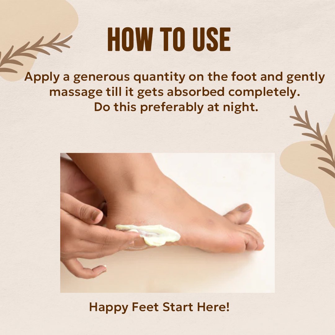 How to Use: Apply a generous quantity on the foot and gently massage till it gets absorbed completely. Do this preferably at night.