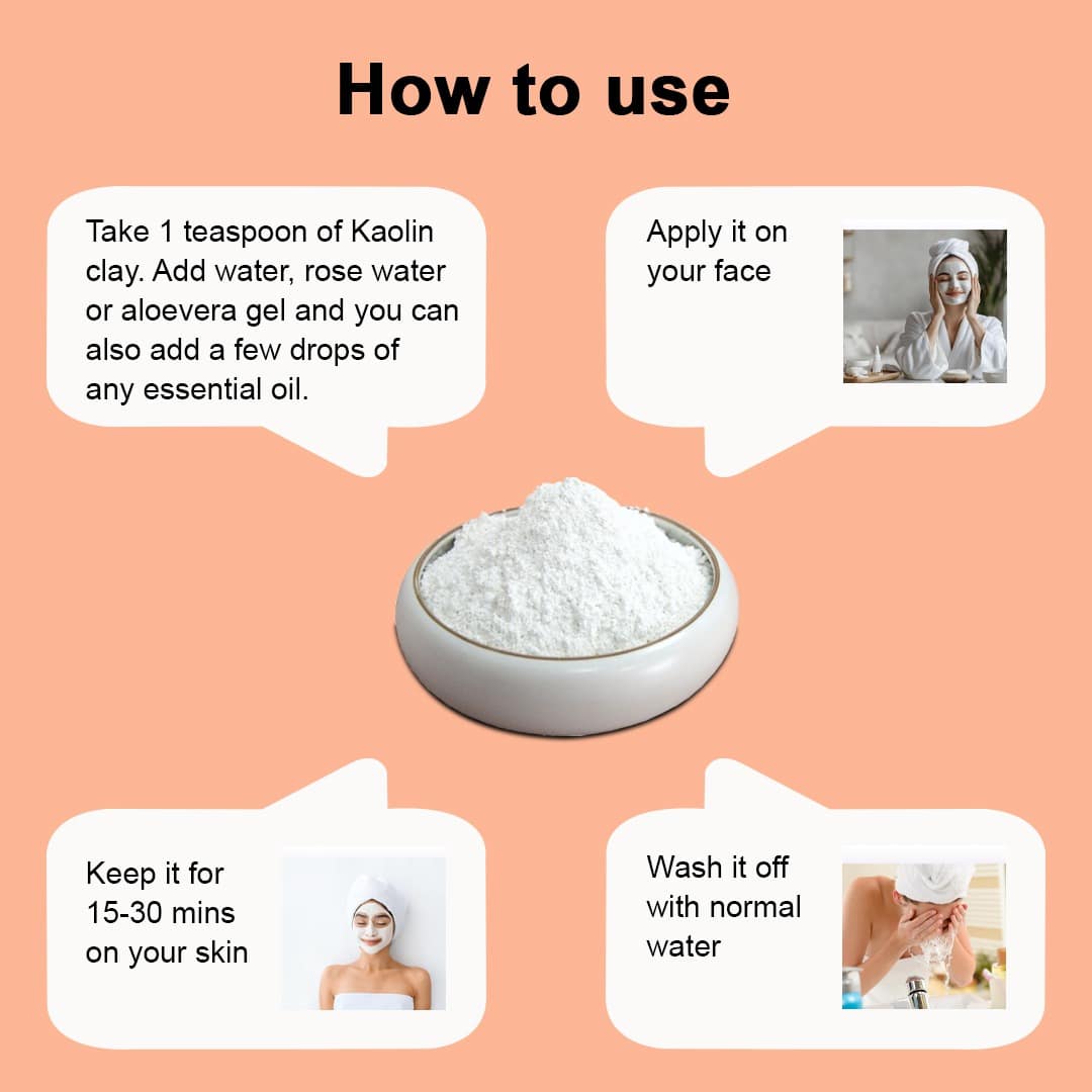 Yauvanya Kaolin Clay also called China Clay, is finely sifted and is soft and smooth to use. It is also called a gentle clay. It soaks up impurities such as oil, dust etc. and gives a glowing skin. It is especially good for sensitive and dry skin. It clings to the pore clogging impurities and helps removes them. It restores the natural shine of your skin. Excellent for making Face Masks and Face Packs. Because kaolin clay is gentler on the skin than other types of clays, it is an excellent exfoliant.