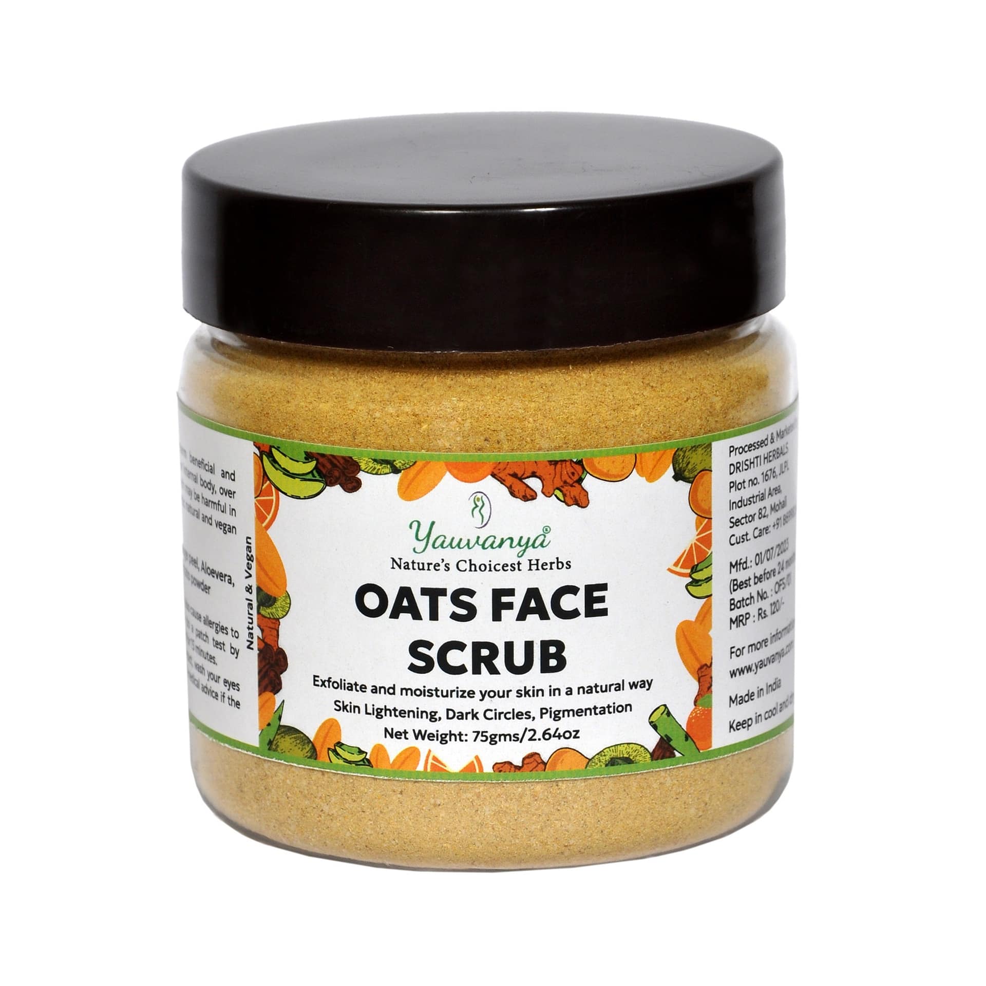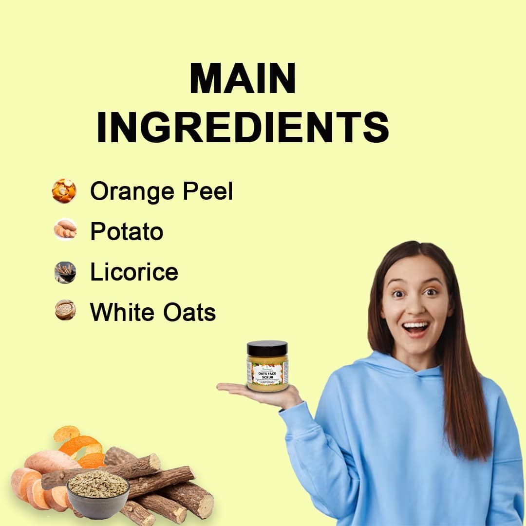 Oats Face Scrub is a proprietary mix of herbs namely oats, potato , amla, licorice, aloevera, amba haldi, orange peel specially curated for dark circles, blemishes, tanning and pigmentation.