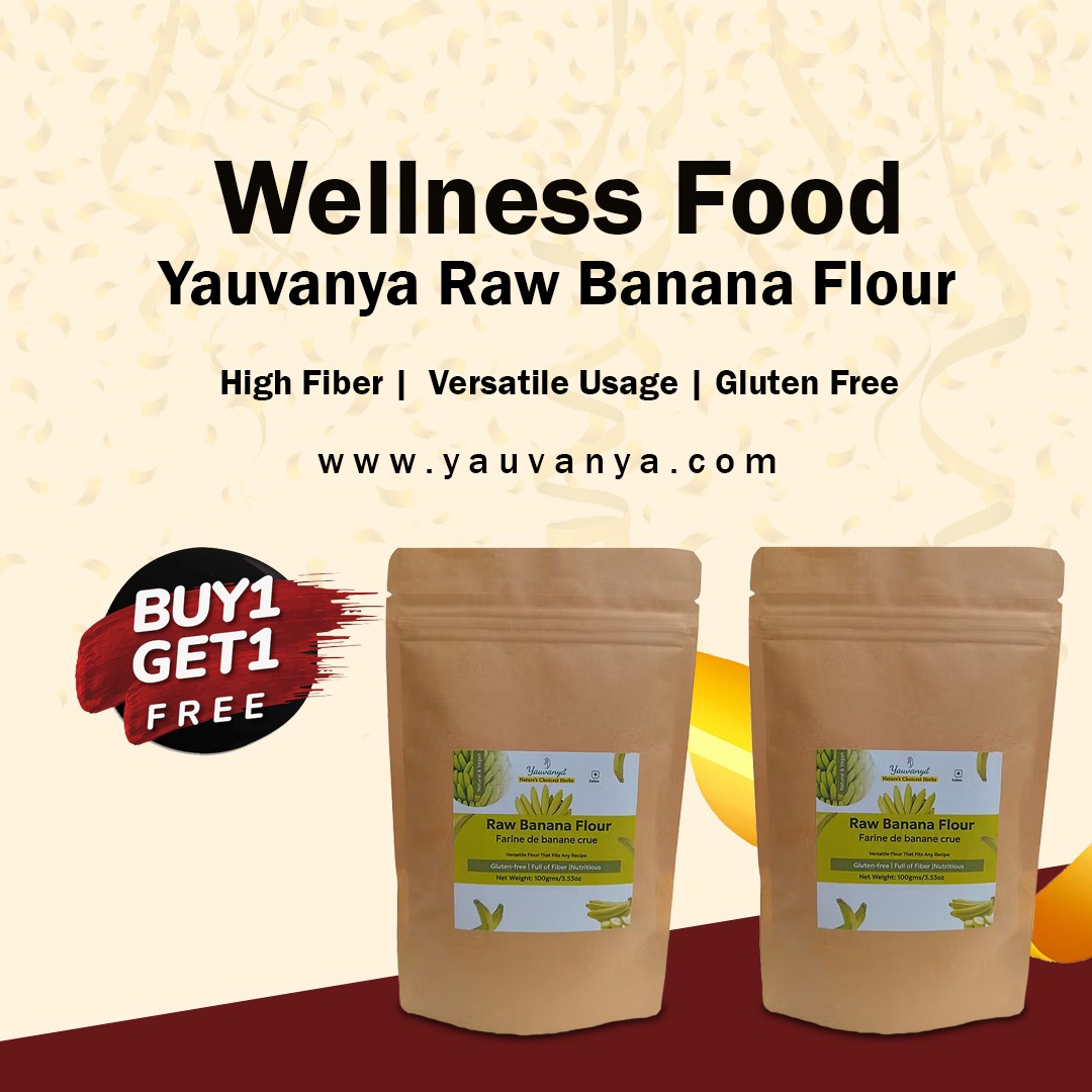 Discover the versatility of Yauvanya Raw Banana Flour, a nutritious alternative crafted from 100% green bananas. This gluten-free flour is perfect for health-conscious individuals looking to enhance their culinary creations.