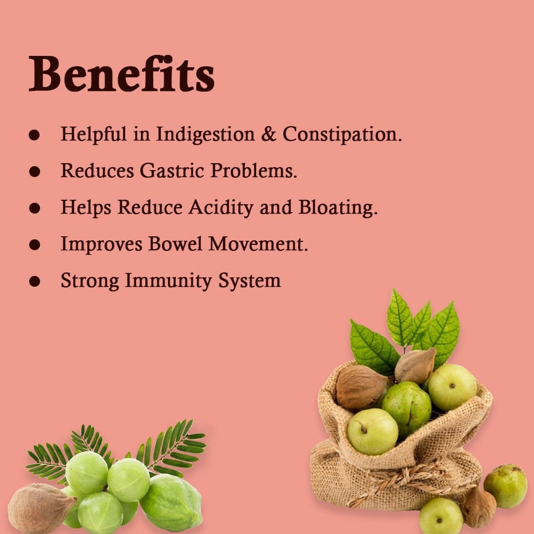 Amla is rich in Vitamin C and strengthens digestive system, Bibhitaki has excellent anti inflammatory properties which rejuvenates the body, Haritaki is rich in antioxidants and helps fight constipation.