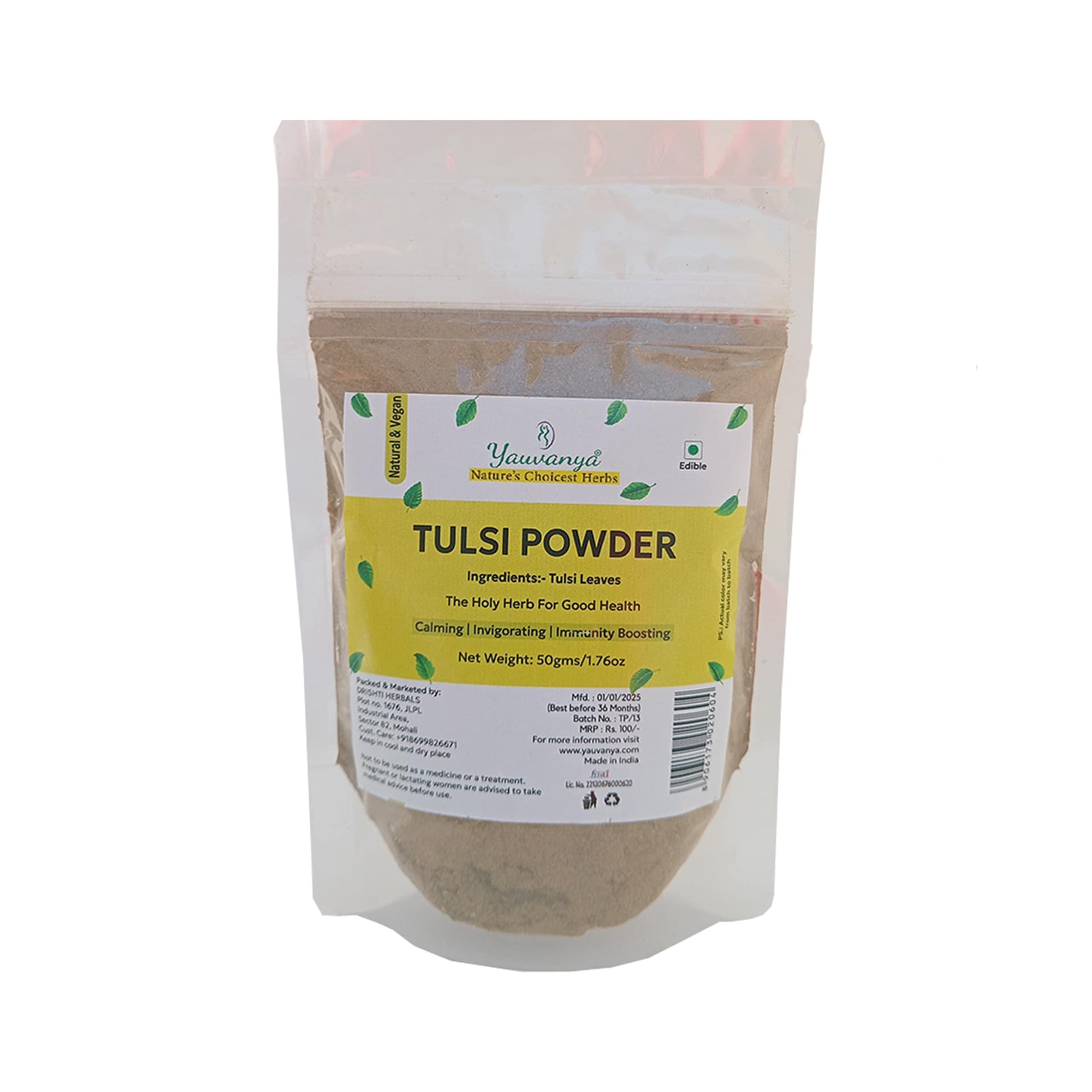 Yauvanya’s Pure Tulsi Powder is incredibly versatile and can be easily added to a variety of beverages and dishes. From a warm cup of aromatic tea to a nourishing herbal concoction (kaadha), the possibilities are endless. Not only does it elevate the flavor of your favorite recipes, but it also provides meaningful health benefits with every sip. Embrace the natural goodness of Tulsi, a gift from nature, perfected by Yauvanya with 100% purity.